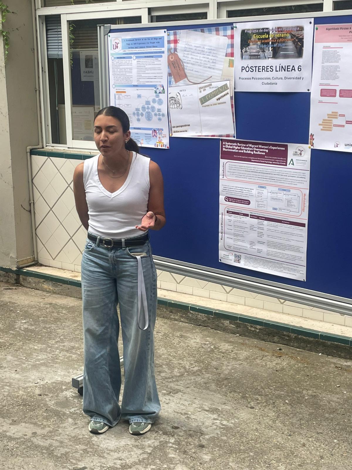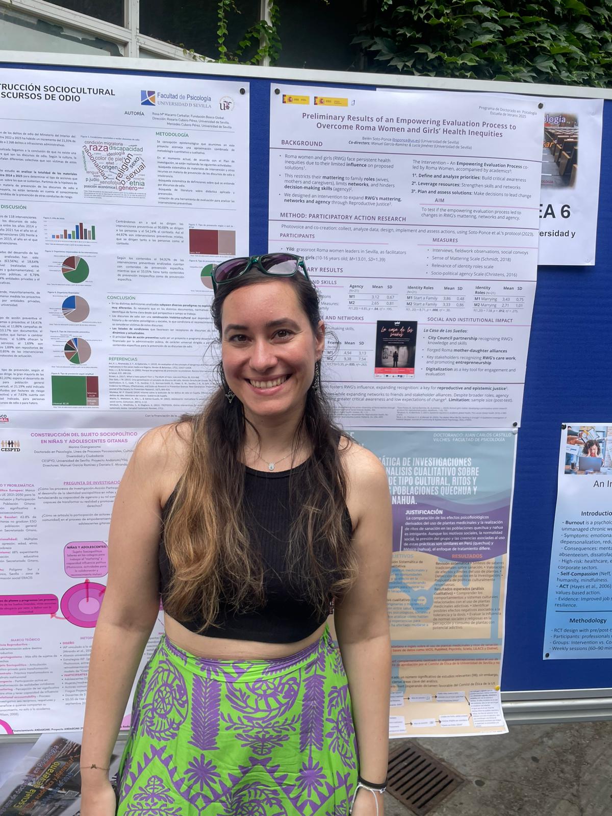 As part of the summer school, our doctoral students presented the progress of their research. Wendy Tatiana Duque Moreno and Julia Jiménez Ceballos shared the advancements made within the MadresUP project. Andrés Ruiz Sánchez presented his work focused on the social determinants of mental health in the Nicaraguan migrant population in Costa Rica. Blanca Vera Moreno presented the development of her doctoral thesis, centered on the experience of migrant women in university settings, within the framework of a series of research projects. Meanwhile, Belén Soto-Ponce and Marina Giangiacomo presented the progress of the research projects POWER2ROMI and ANDAROMI, which focus on collaborative advocacy processes with Roma women and girls in different neighborhoods of Seville. These presentations reflect the commitment and thematic diversity that characterize the work of our research team.
